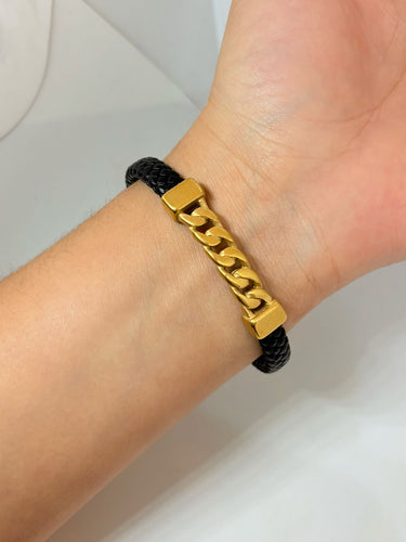 PULSERA PIEL CON CADENA DORADA