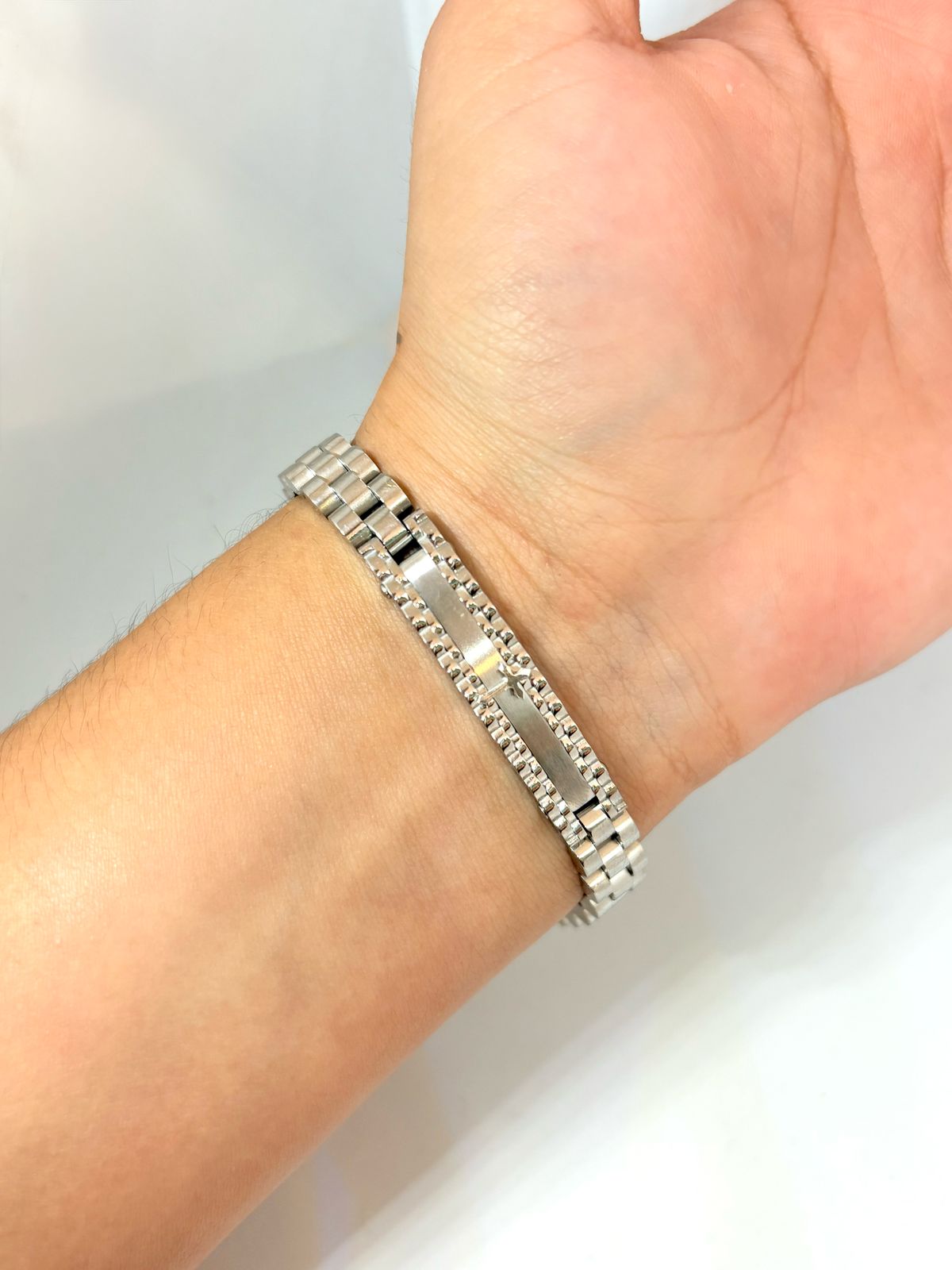 PULSERA TIPO ROLEX PLATEADA CON CRUZ
